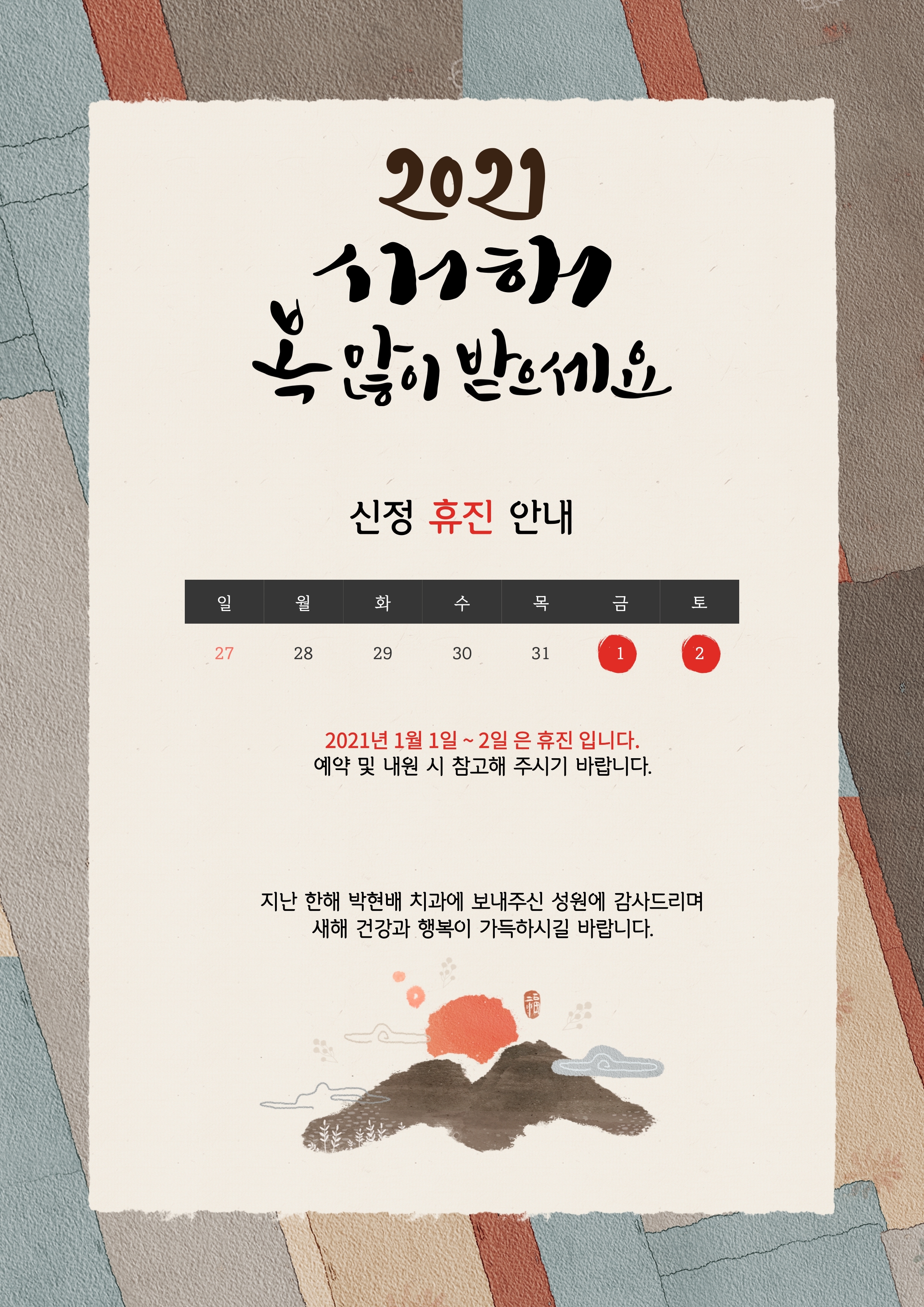 휴진날짜 확인하시어 진료예약에 착오 없으시길 바랍니다.